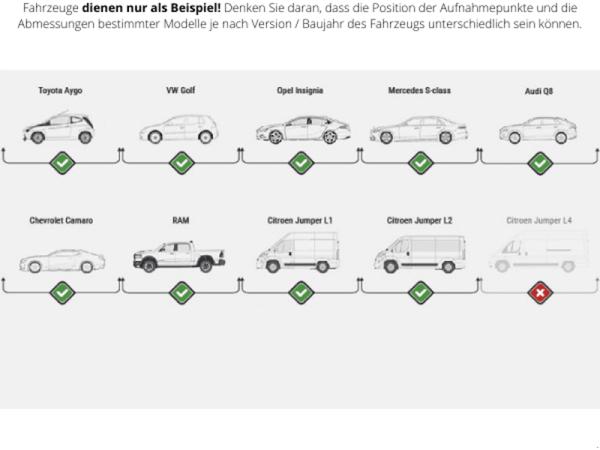Verwendbar für sehr breite Autos: max. Wagenbreite 2500 mm
