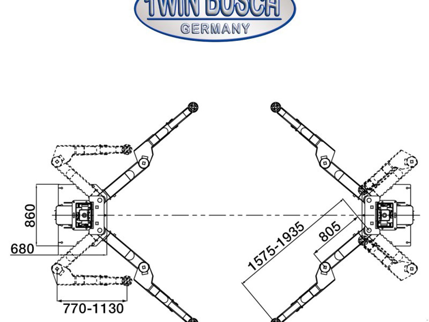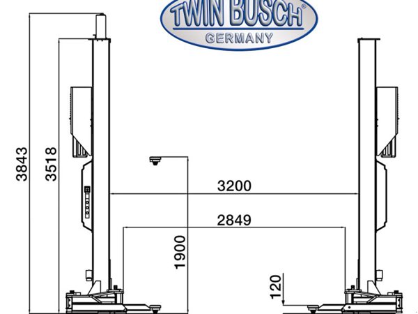 Mit 8.0 t Hubkraft und symmetrisch teleskopierbaren Doppelgelenk-Tragarmen im M-Tragarm-Design ist die TW280 das kraftvollstes Powerpaket von Twin Busch im 2-Säulen-Bereich.