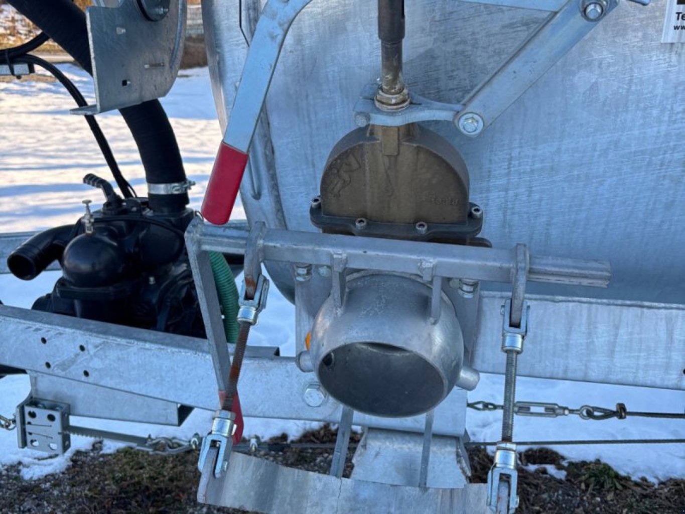 3 Wege-Hahn: Güllegrube-Fass oder Fass-Rücklaufleitung d.h. Der Rest aus dem Ansaugtrichter rinnt nach dem Ansaugen über die Rücklaufleitung zurück
