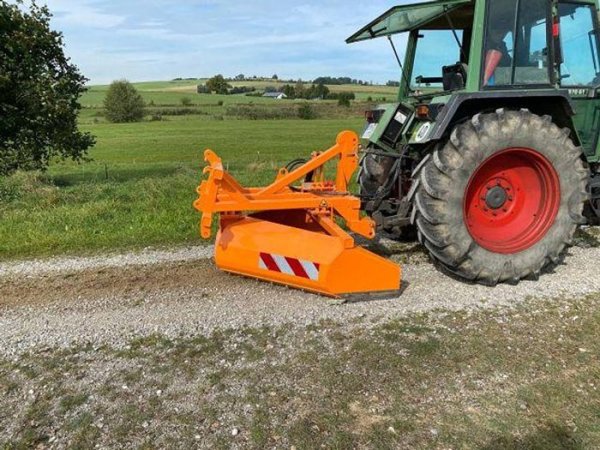 gewerblich05.10.2025- MS Grader 250 K mit Hydraulikzylinder für die Neigungseinstellung Breite 252cm Länge 200cm Höhe 170cm Gewicht 1190kg Stahlblechstärke 12mm Hardox Schürfleiste 12mm Vorteile auf eine Blick: - Ab 100 PS einsetzbar niedriger Verbrauch - Dachprofil sowie schräges Abziehen mit einem Handgriff möglich. - durch die gebogene Form des Schildes rollt sich das Kies gleichmäßig in die Vertiefungen des Weges - aufgrund der V-Form in Kombination mit der Hardoxschiene ist es möglich, auch bei trockenen und harten Wegen die Form so zu verändern, dass der Wasserablauf sichergestellt wird, wodurch die Haltbarkeit des Weges um ein Vielfaches verlängert wird, da kein Wasser stehen bleibt und so zu Auswaschungen und Aufweichungen führt. - sehr große Auflagefläche beim Hobeln (bedingt durch V-Form), wodurch der saubere Lauf über Schlaglöcher gewährleistet wird. - durch die V-Form ist das Kies immer da wo Sie es wollen, nicht in der Wiese oder neben der Straße. - Geschwindigkeiten bei Nutzung an der Heckhydraulik ohne Probleme bis 15 Km/h möglich. - Sehr einfache Bedienung, Freude am Fahren