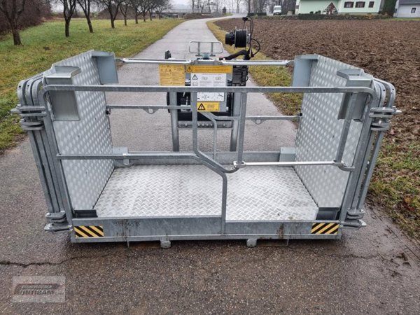 Hubhöhe 13,80 m, Tragkraft 4.000 kg, Arbeitskorb mit Funkfernbedienung, Leichtgutschaufel, Palettengabel