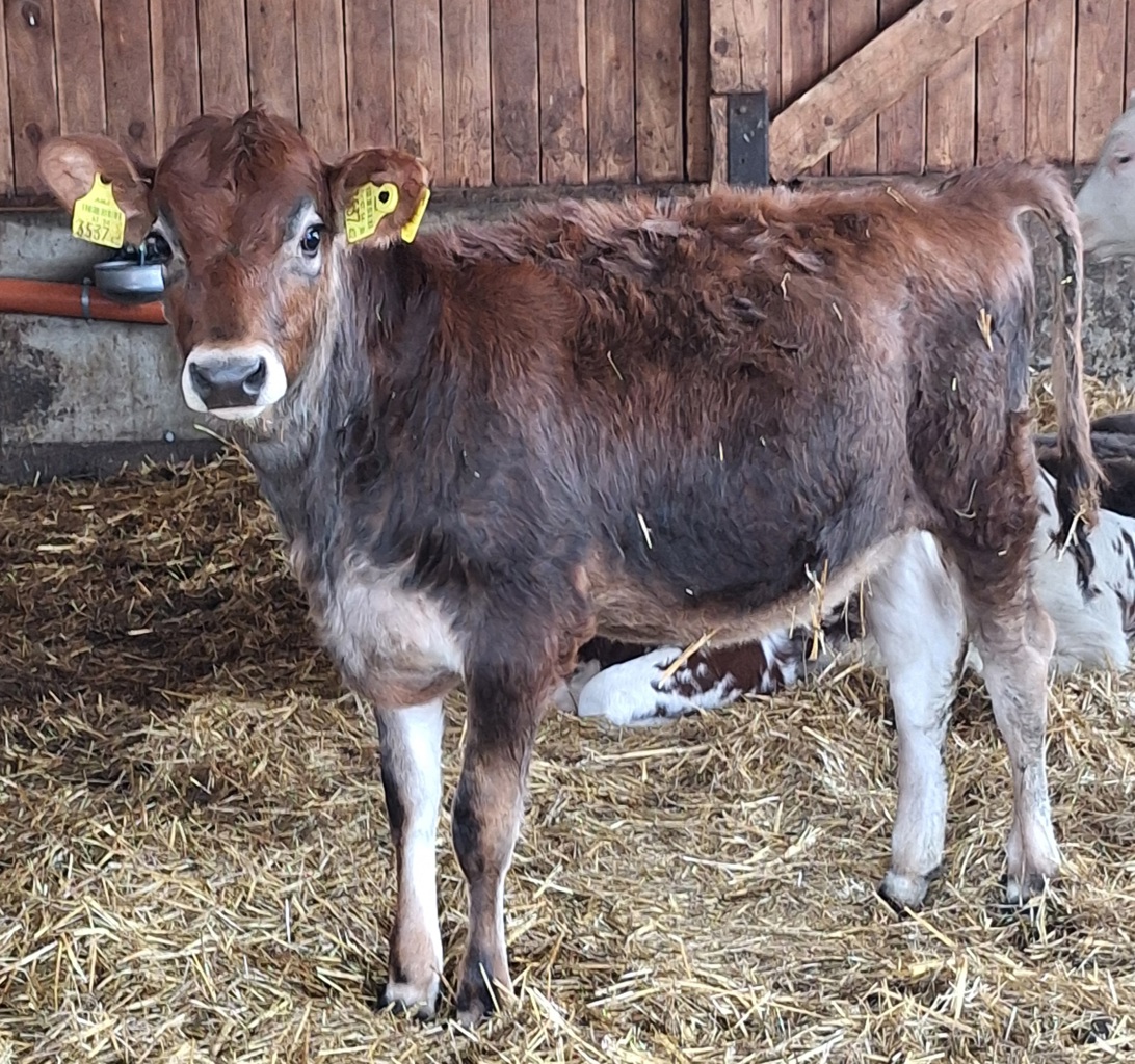 Gut entwickeltes, hornloses Jersey Kalb aus tiefer internationaler Kuhfamilie