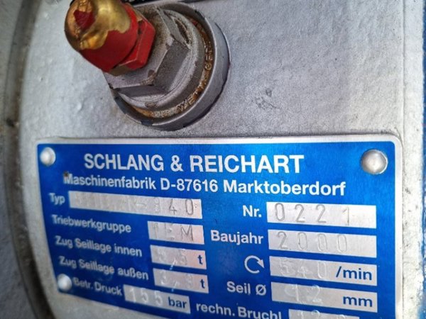 Schlang & Reichart 511B mit ca 120 mt 12 mm , Seilverteilarm mit Einzugsbremse Terra-Funk 2024 , Kupplung 2024 , beidseitig WW- Walterscheid , nur im eigenen Privat-Wald im Einsatz , in sehr gutem Zustand , ab Standort A 6934