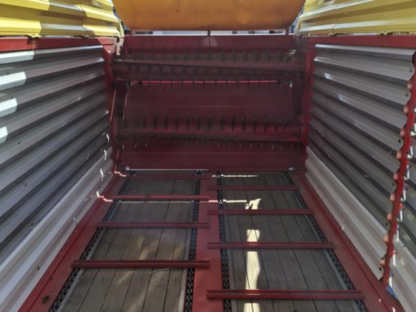 Bedienterminal, Tandemachse, hydr. Bremse, Reifen 19.0/45-17, 3 Dosierwalzen, Querförder-band, Knickdeichsel, 4 Schwingen mit Zentral-schmierleiste, Gelenkwelle 2024 neu, ISOBUS fahig, 31 Messer (2 Balken 15 und 16 Messer), Messerbalken seitlich ausschwenkbar, Aufbau umklappbar, Abladeautomatik, hydr. Rückwand, Pick-up Zinken 2026 NEU, Pick-up 2026 neu gelagert,Zentralschmierung