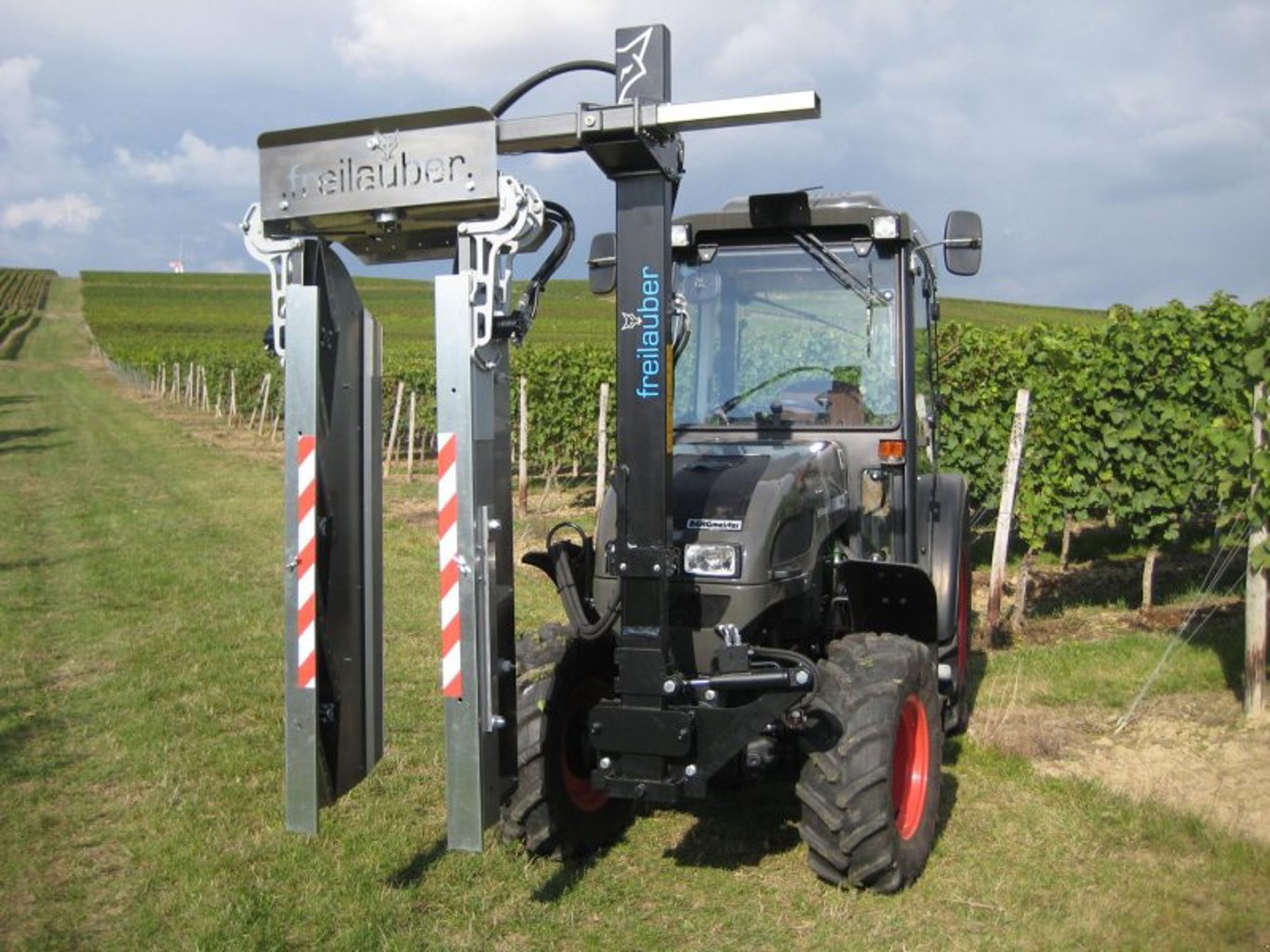 Ausstattung: • Parallellogramm für automatische Anpassung an die Rebstockreihen • Abdichtung der Sprühkammern mit Schuppen • 4 Tropfstopp-Düsen für die optimale Benetzung • Anfahrsicherung • Abstellwagen