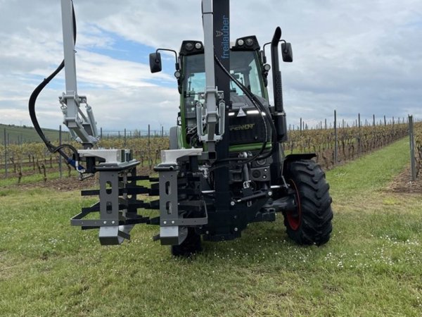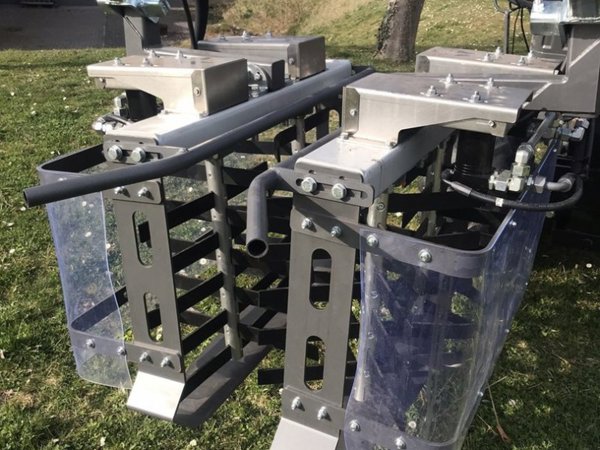 Ausstattung: • Parallellogramm für automatische Anpassung an die Rebstockreihen • Abdichtung der Sprühkammern mit Schuppen • 4 Tropfstopp-Düsen für die optimale Benetzung • Anfahrsicherung • Abstellwagen