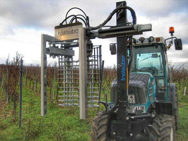 Ausstattung: • Parallellogramm für automatische Anpassung an die Rebstockreihen • Abdichtung der Sprühkammern mit Schuppen • 4 Tropfstopp-Düsen für die optimale Benetzung • Anfahrsicherung • Abstellwagen