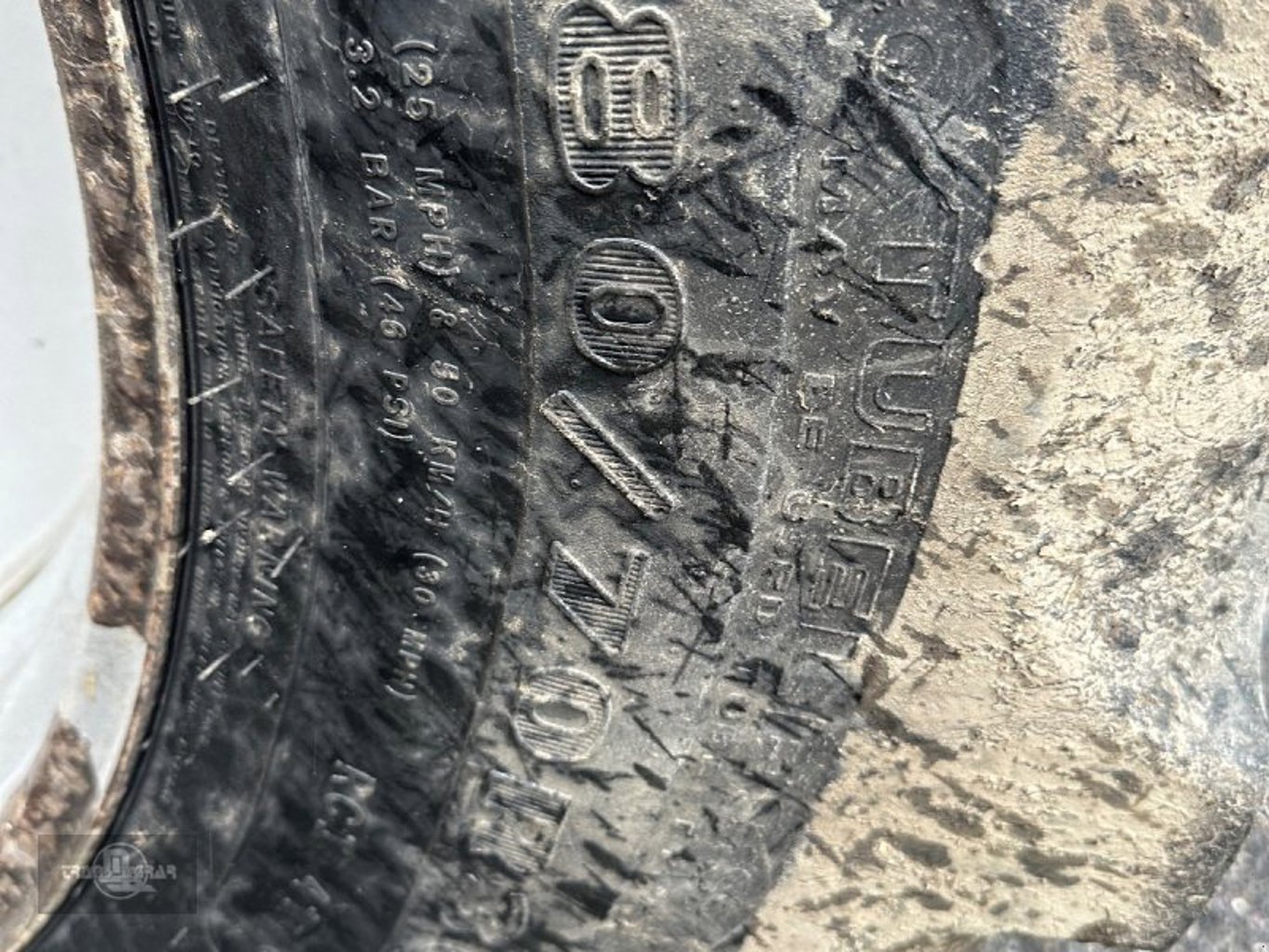 Das hydrostatische Fahrantriebssystem ermöglicht eine stufenlose Geschwindigkeitsregelung bis 20 km/h und sorgt für komfortable Bedienung sowie schnelle Straßentransporte zwischen den Feldern. Die Bereifung ist mit GoodYear-Reifen ausgestattet: vorne 480/70R30 mit 60 Prozent Profil und hinten 800/65R32 mit 70 Prozent Profil, was noch eine gute Restlaufzeit und sicheren Halt bietet.