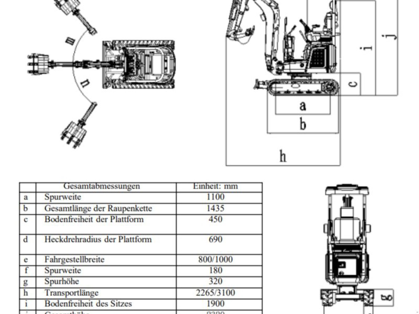 Fahrwerksbreite: 800–1000 mm