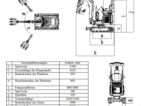 A: Maximale Grabreichweite am Boden: 3380 mm