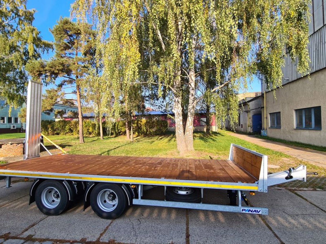 Der Tieflader der Marke Panav, Modell TP018L, ist ein vielseitig einsetzbarer Tandemachser, der durch seine hervorragende Ausstattung besticht.