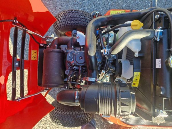 Der Kubota Rasentraktor ist mit einem 2-Zylinder-Dieselmotor ausgestattet, der für enorme Durchzugskraft, niedrigen Verbrauch und eine besonders lange Lebensdauer bekannt ist. Selbst dichter oder feuchter Rasen wird mühelos bewältigt.