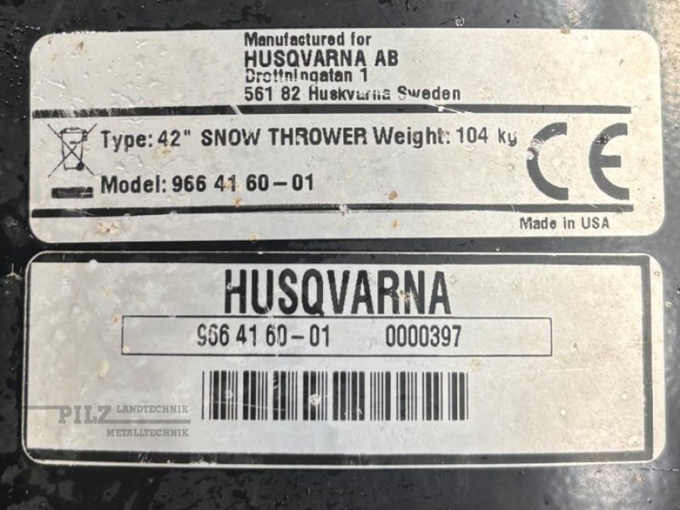Mit dieser neuwertigen gebrauchten Husqvarna Schneefräse 106cm (42 Zoll) mit der Artikelnummer 966 41 60-01 erhalten Sie ein zuverlässiges Anbaugerät für Ihren Husqvarna Rider.