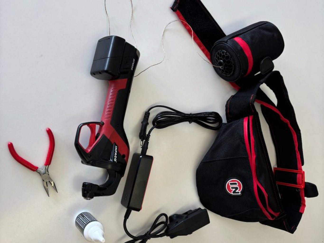 Das Bindegerät wird mit einem leistungsstarken Akku ausgeliefert, der Ihnen eine komfortable und kabellose Arbeitsweise ermöglicht. Sie können das Gerät flexibel in Ihren Kulturen einsetzen, ohne auf eine Stromquelle angewiesen zu sein. Dies erhöht Ihre Bewegungsfreiheit erheblich und beschleunigt die Arbeitsprozesse in Ihren Anlagen.