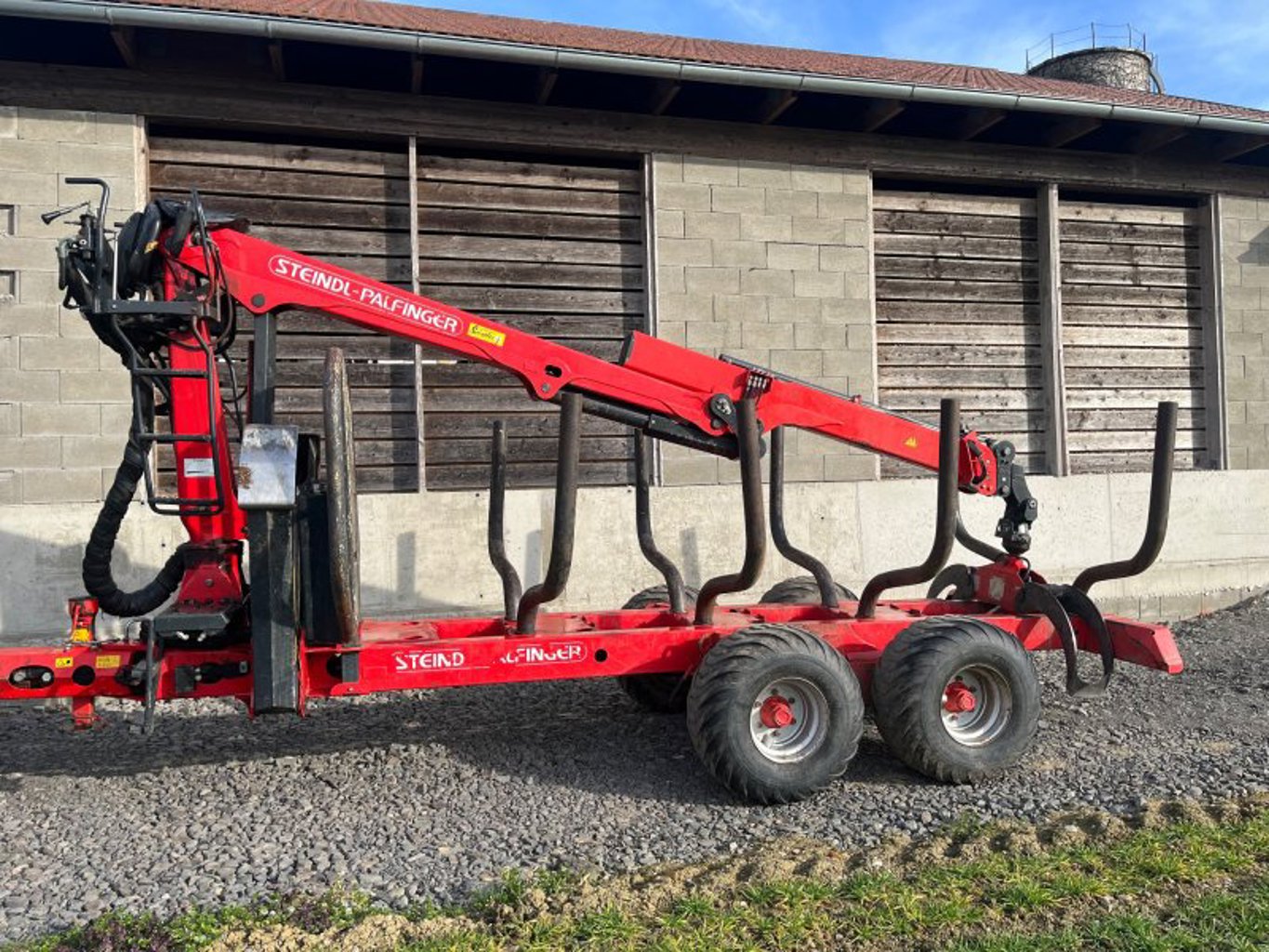 Zum Verkauf steht ein Forstanhänger der Marke Steidl Palfinger mit FKL5285S Kran in verstärkter S-Ausführung.