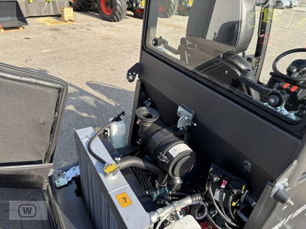 Die Kabinenvariante dieses Modells sorgt für optimalen Bedienkomfort bei allen Witterungsbedingungen. Der Fahrer arbeitet geschützt vor Wind, Regen und Kälte, was gerade bei längeren Einsätzen die Arbeitsqualität und Effizienz deutlich steigert. Die gute Rundumsicht aus der Kabine ermöglicht präzises Arbeiten auch in engen Hofbereichen und bei anspruchsvollen Ladeszenarien.