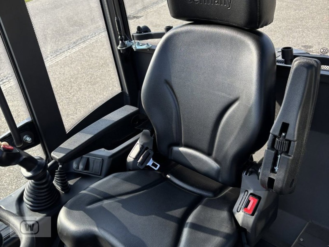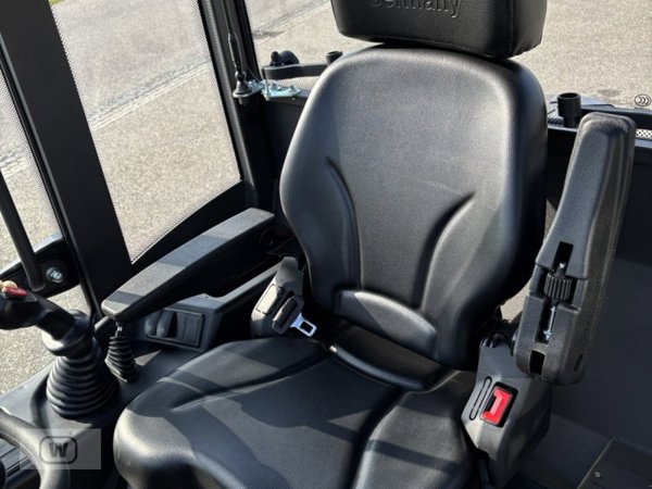 • Komfortsitz gefedert & verstellbar mit Armlehnen samt Sicherheitsgurt