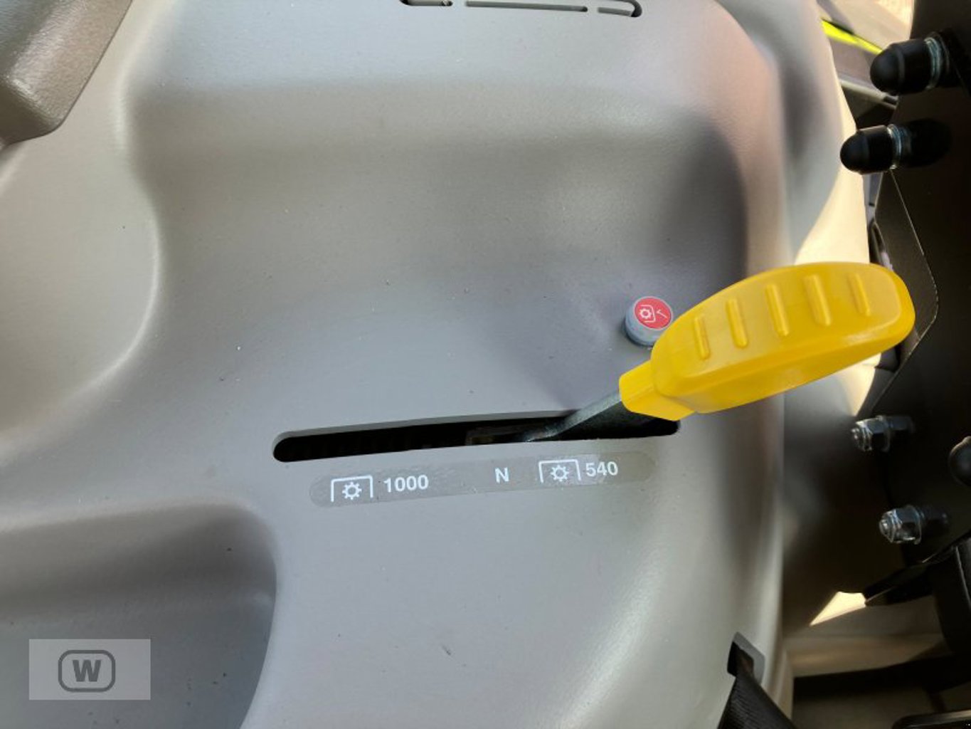 Die Maschine ist mit zwei Zapfwellengeschwindigkeiten ausgestattet. Dies erlaubt eine flexible Anpassung an unterschiedliche Anbaugeräte und Arbeitsbedingungen, was die Einsatzmöglichkeiten des Traktors deutlich erweitert. Je nach Anforderung des jeweiligen Geräts kann die passende Drehzahl gewählt werden, was die Arbeitseffizienz erhöht und einen schonenden Betrieb der Anbaugeräte ermöglicht.