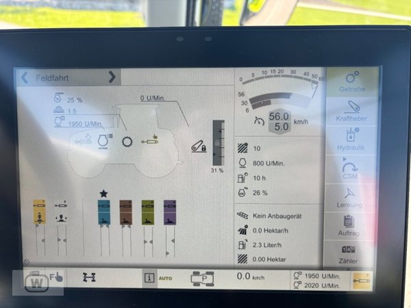 Die Maschine ist mit zwei Zapfwellengeschwindigkeiten ausgestattet. Dies erlaubt eine flexible Anpassung an unterschiedliche Anbaugeräte und Arbeitsbedingungen, was die Einsatzmöglichkeiten des Traktors deutlich erweitert. Je nach Anforderung des jeweiligen Geräts kann die passende Drehzahl gewählt werden, was die Arbeitseffizienz erhöht und einen schonenden Betrieb der Anbaugeräte ermöglicht.
