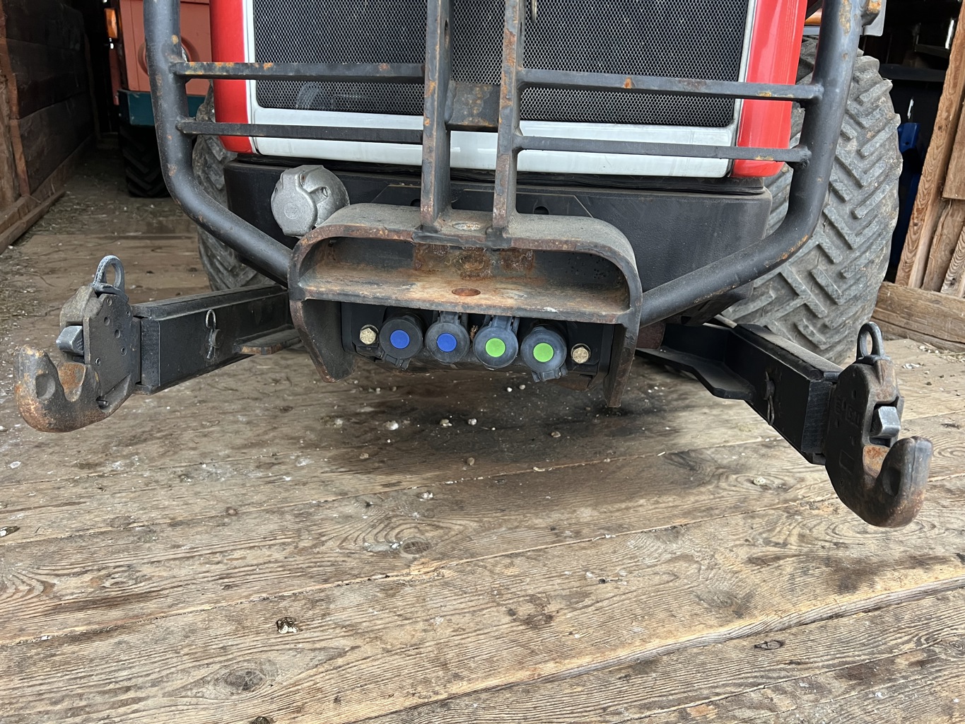 105PS, 4,5lt, 4 Zylinder, Sauter Fronthydraulik, Frontzapfwelle, Klimaanlage, DI, hydr.Bremsventil, Lastschaltgetriebe, Powershuttle, Kreuzsteuerhebel, 4xdoppelwirkend hinten, 2x doppelwirkend vorne, Bereifung vorne 480/65 R24, Bereifung hinten 600/65 R34