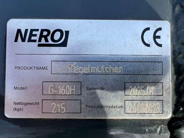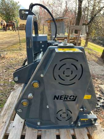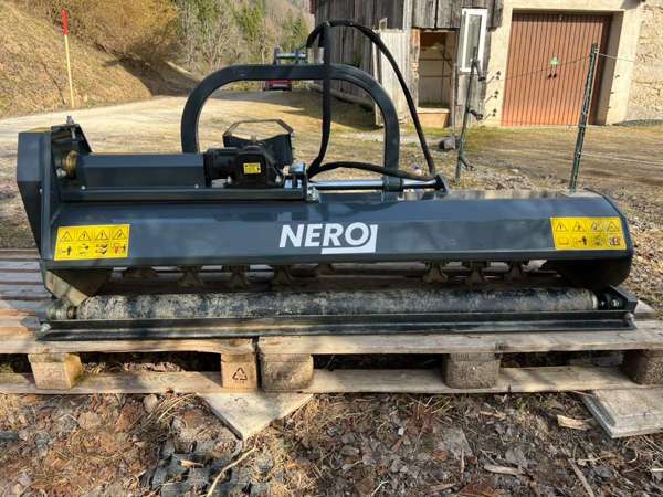Nero G-160H Schlegelmulcher mit 350 mm Seitenverschub in sehr gutem Zustand. Wurde sehr wenig genutzt, 10 Bstd. Stand unter Dach. Für Heckanbau, 540 Umdrehungen. Leichtes Gerät, 215 kg. 26 Hammerschlegel mit je 400g. Ab 30 PS Traktorleistung, Kat. 1