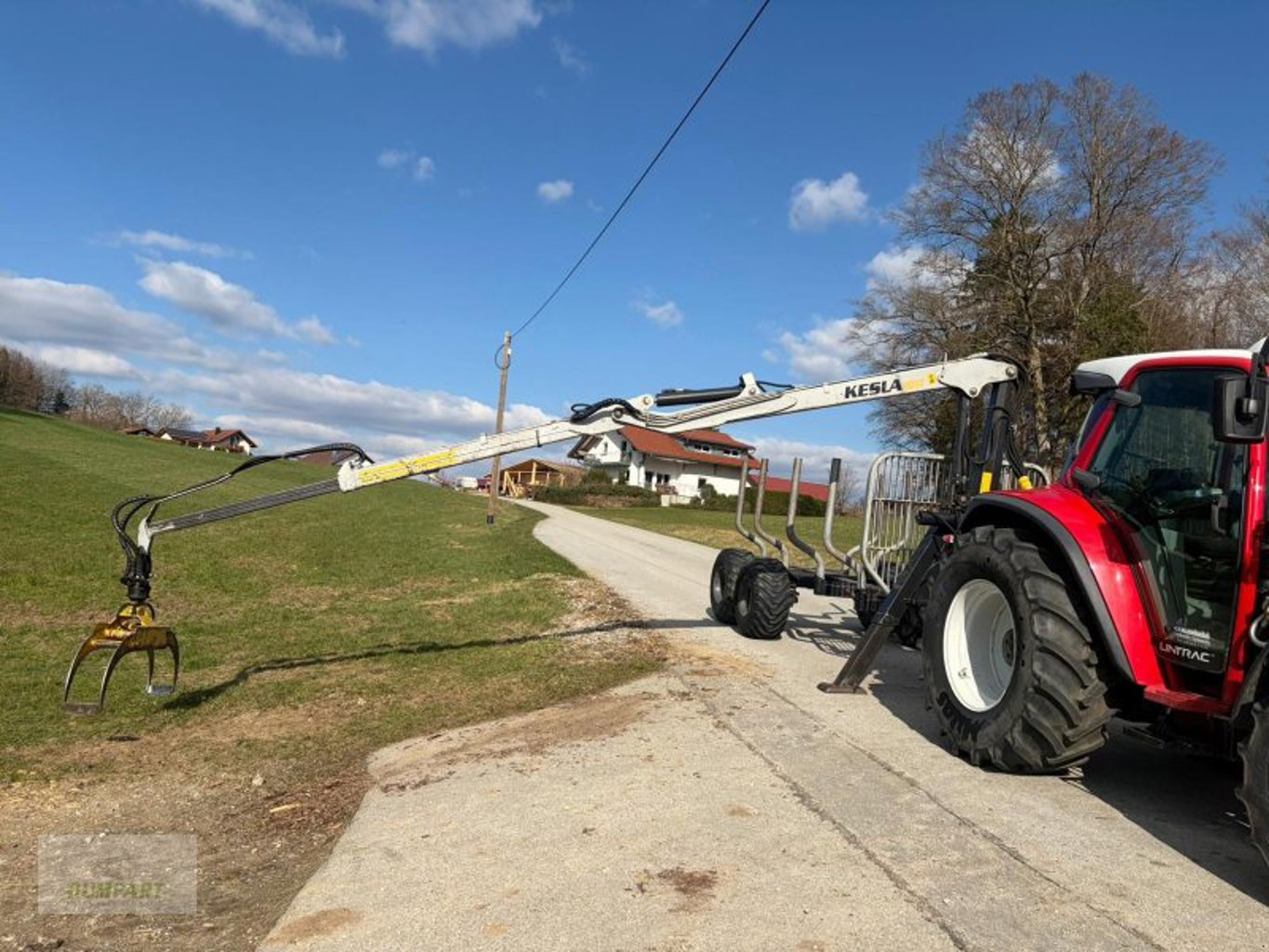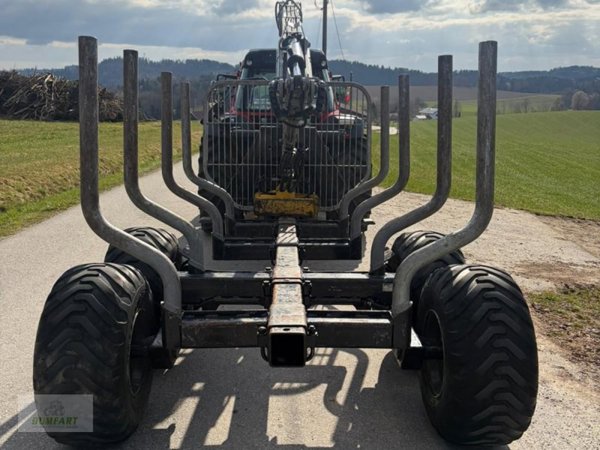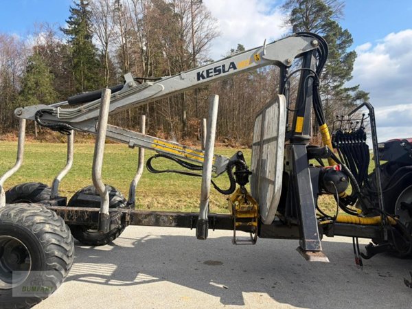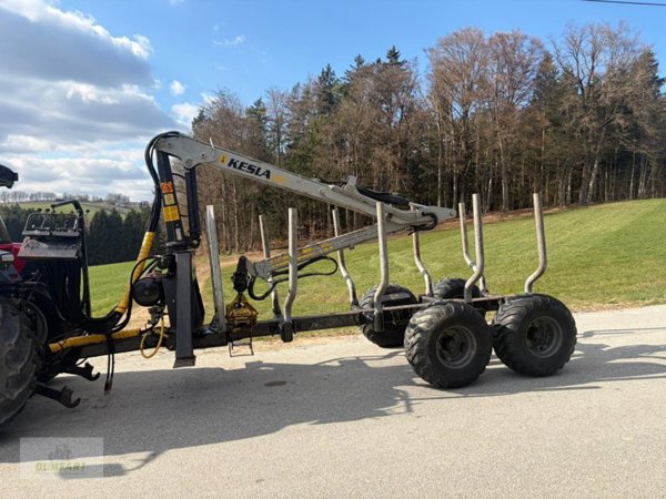 zu Verkauf steht ein Kesla 203T Holzrückewagen, 8to, mit 4 Rungen, Druckluftbremse, Reisigwanne, Knickdeichsel, Reichweite Kran: 6,7m
