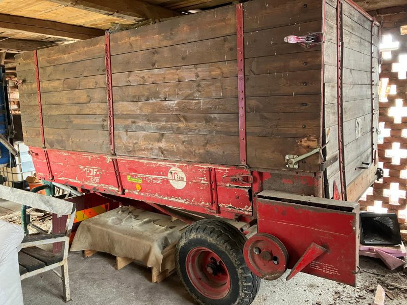 *Kipper, 368x202x132, mit Beleuchtung, dreistufiger Hubzylinder etwas undicht, Feststellbremse über Hydraulik. € 1.000,-