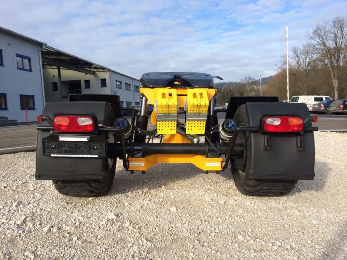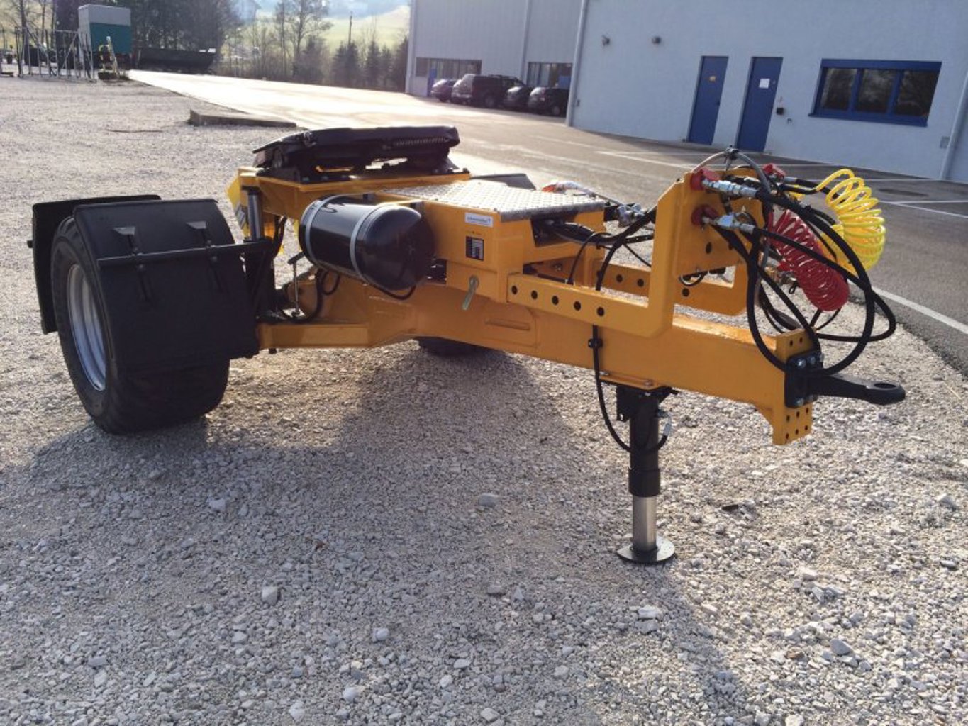 „DOLLY“, hydr. Federung des Aufbaues mit Heben und Senken Ventil, auto. Niveauregelung (Einstellung auf Fahrniveau), ALB Regler, Federspeicher, hydr. Stützfuß, 15-t-Achsen: Fabrikat BPW, Breite 2,55 m, 550/45/R22,5 ET 0 16PR Alliance, Zugöse Schraubzugöse Scharmüller K 80/18+3 t Stützlast, technische Nutzlast 18 t, Zentralrohrrahmen mit Zentralkugelaufhängung K110 und Schiebeplattensystem für die mechanische Schnellverstellung des Sattelvormaß inkl. Aufnahmen der hydraulischen Federung, Sattelvormaß mech. längenverstellbar in 75-mm-Schritten von 200 - 600 mm, ca. +/- 180 bis 200 mm hydraulisch höhenverstellbar inkl. auto. Niveaurückstellung. Brandmair Stefan privat Verkauf.