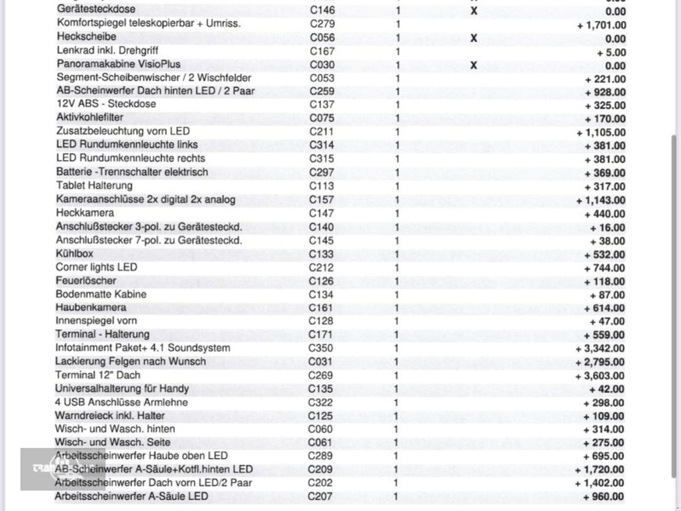 - Arbeitsscheinwerfer LED: 2x vorne, 4x hinten