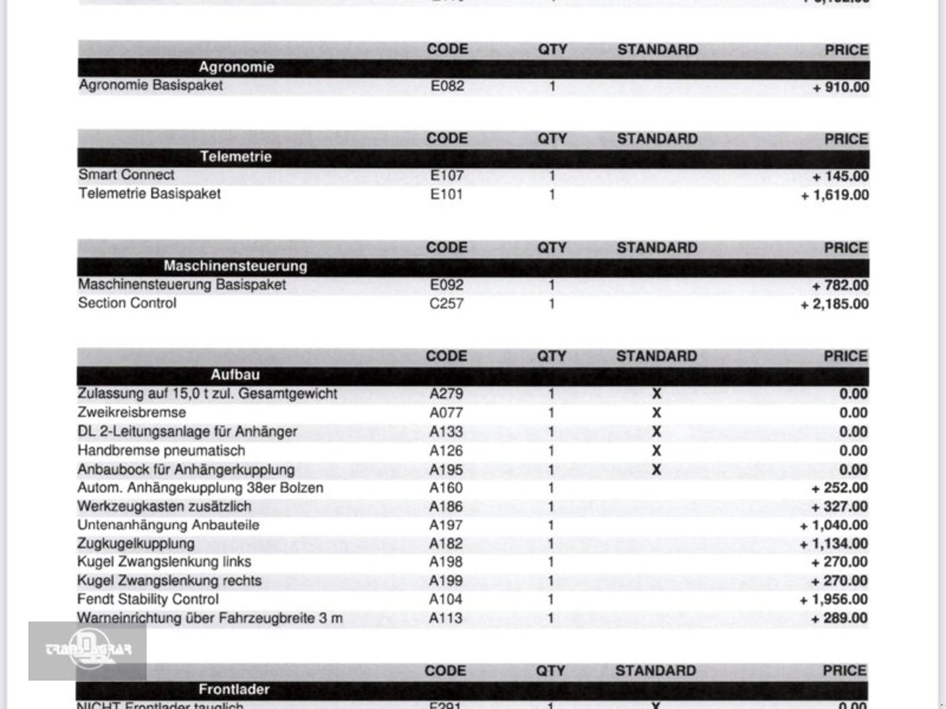 - Mittelachssteuergeräte mit Belegung FKH und 1x dw/hintenFrontanbau