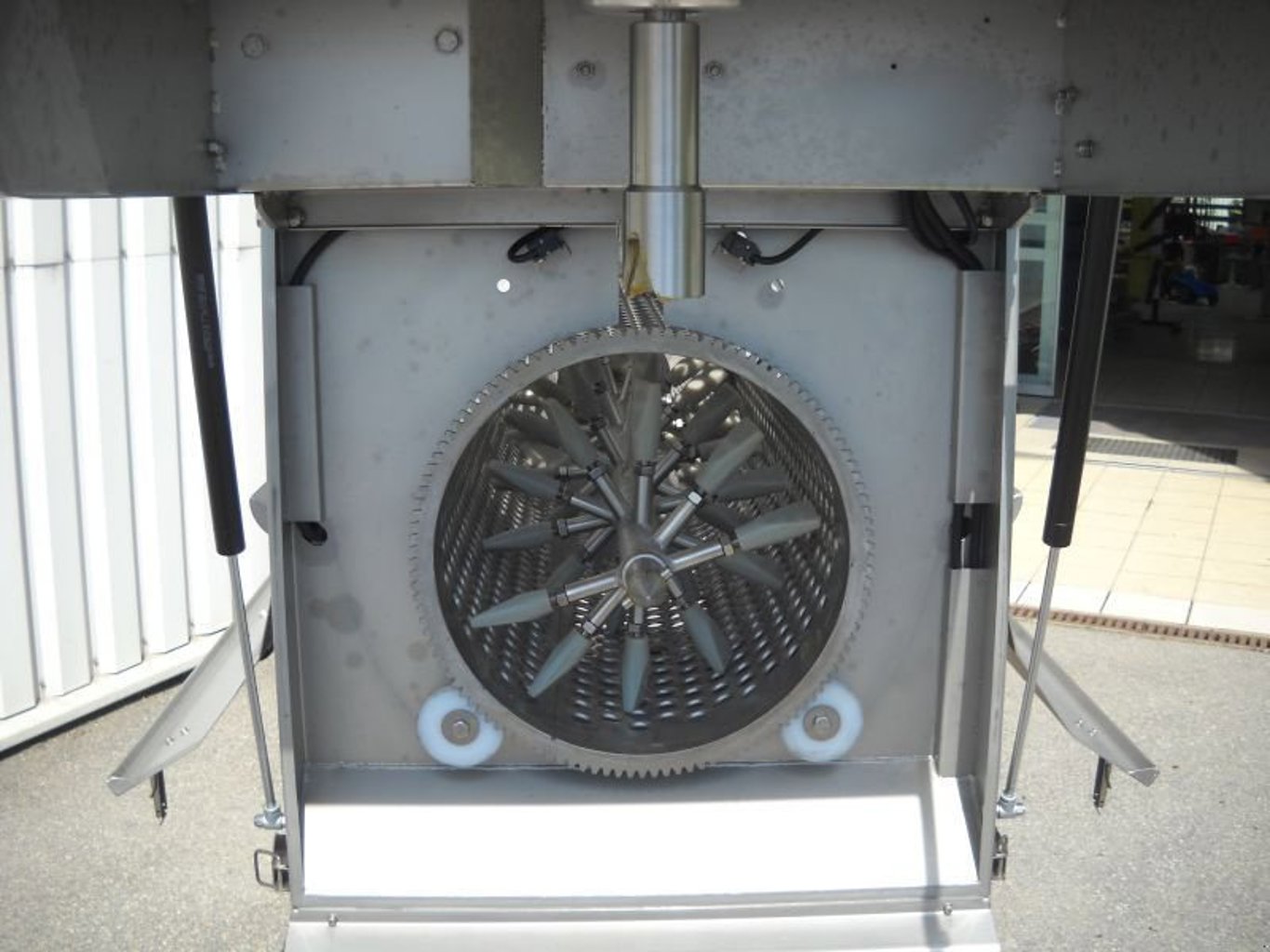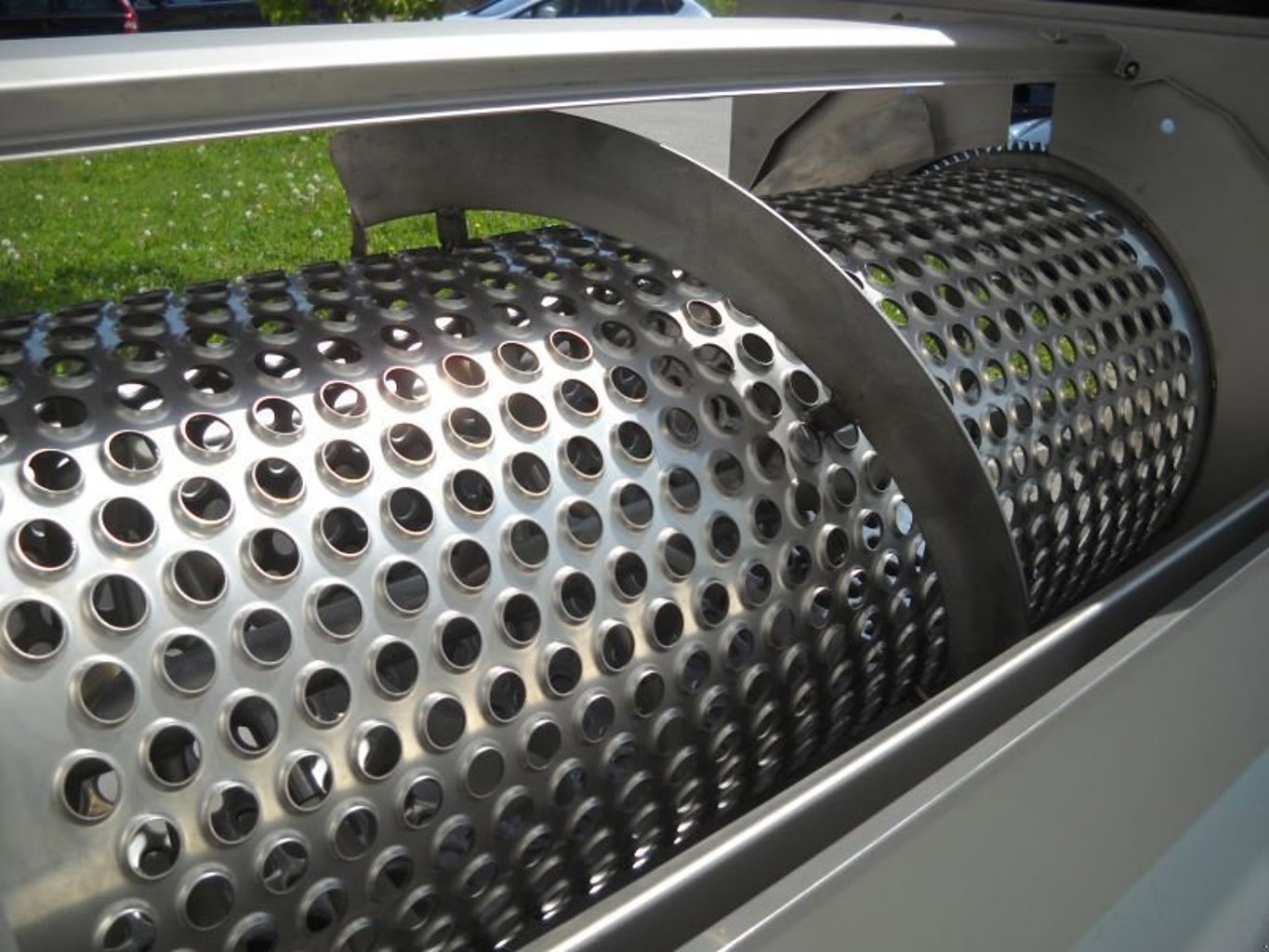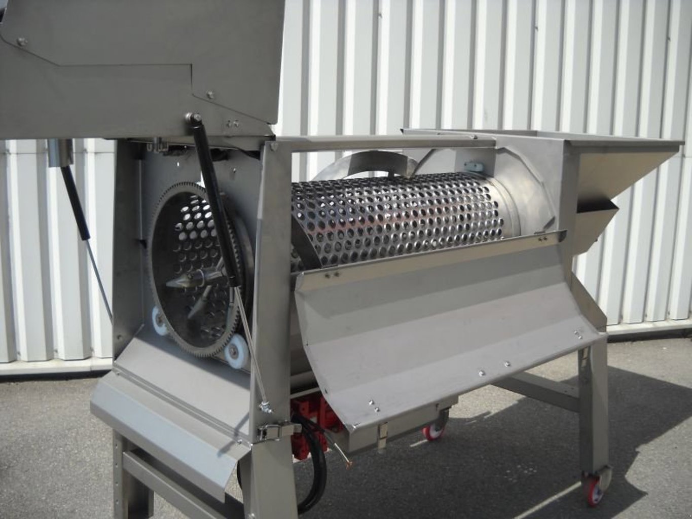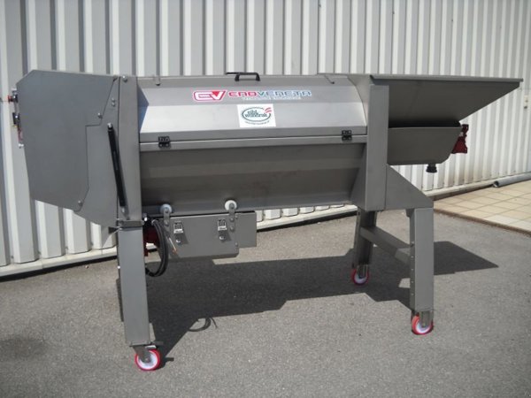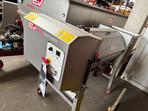 ENOVENETA Rebler TOP 10, 10-12 t Leistung pro Stunde mit Inverter, Großkistenübernahme als Option möglich, Zuführschnecke mit eigenem Antriebsmotor mit Variator zur stufenlosen Geschwindigkeitsregelung der Zuführschnecke unabhängig von der Abbeerwelle, eigener Antriebsmotor für Abbeerwelle und Abbeerkorb mit Variator zur stufenlosen Drehzahlverstellung, Edelstahl- oder Kunststoffabbeerkorb mit unterschiedlicher Lochung gegen Aufpreis möglich, Quetschgruppe mit eigenem Antriebsmotor und verstellbarem Walzenabstand, komplett aufklappbares Gehäuse und ohne Werkzeug entnehmbare Schlegerwelle und Abbeerkorb für leichte, rasche Reinigung, serienmäßig höhenverstellbares Fahrgestell mit Laufrollen, Fahrgestellverbreiterung als Option erhältlich, Quetschen ohne Rebeln bzw. Rebeln ohne Quetschen ebenso möglich ---
