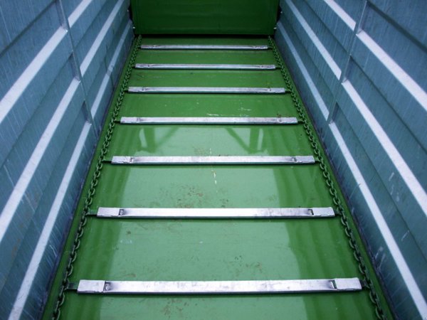 ? die Kette läuft über einen 12 mm dicken Kunststoffmantel, der auf dem Boden des Behälters liegt