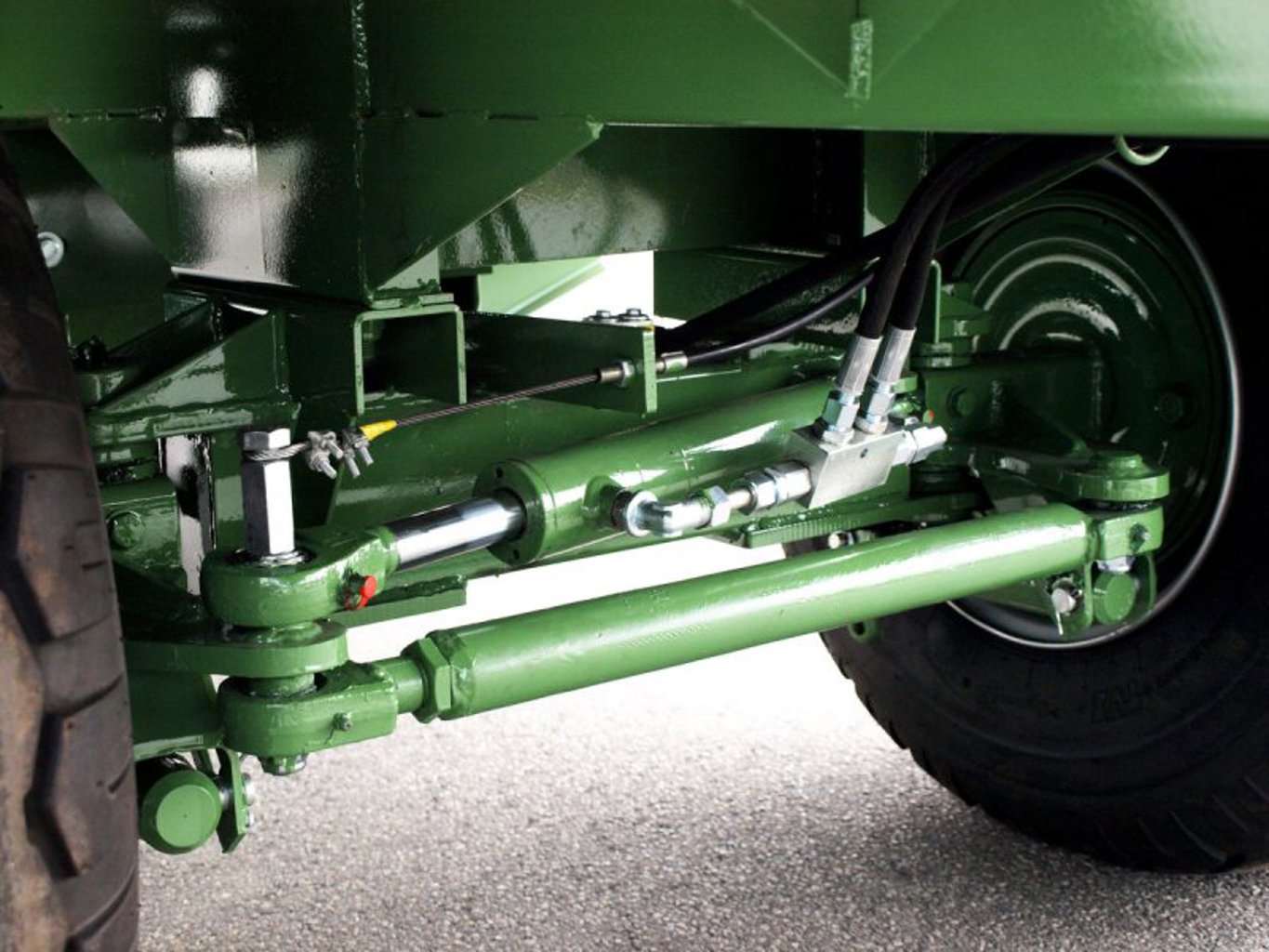 Die hydraulische Bordwanderhöhung erhöht die Flexibilität des Streuers und ermöglicht eine einfache Anpassung an verschiedene Einsatzbedingungen und Düngermaterialien.
