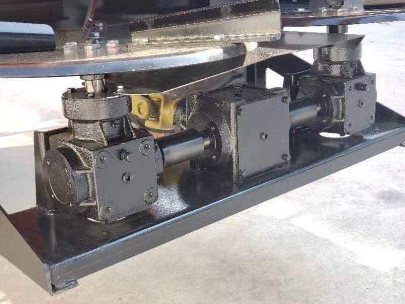 Austragsystem 2. Streuscheiben mit Getriebe mechanisch über Zapfwellenantrieb 540 U/min.