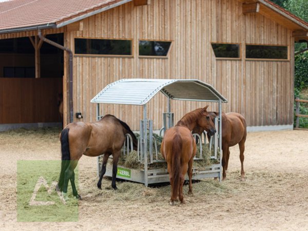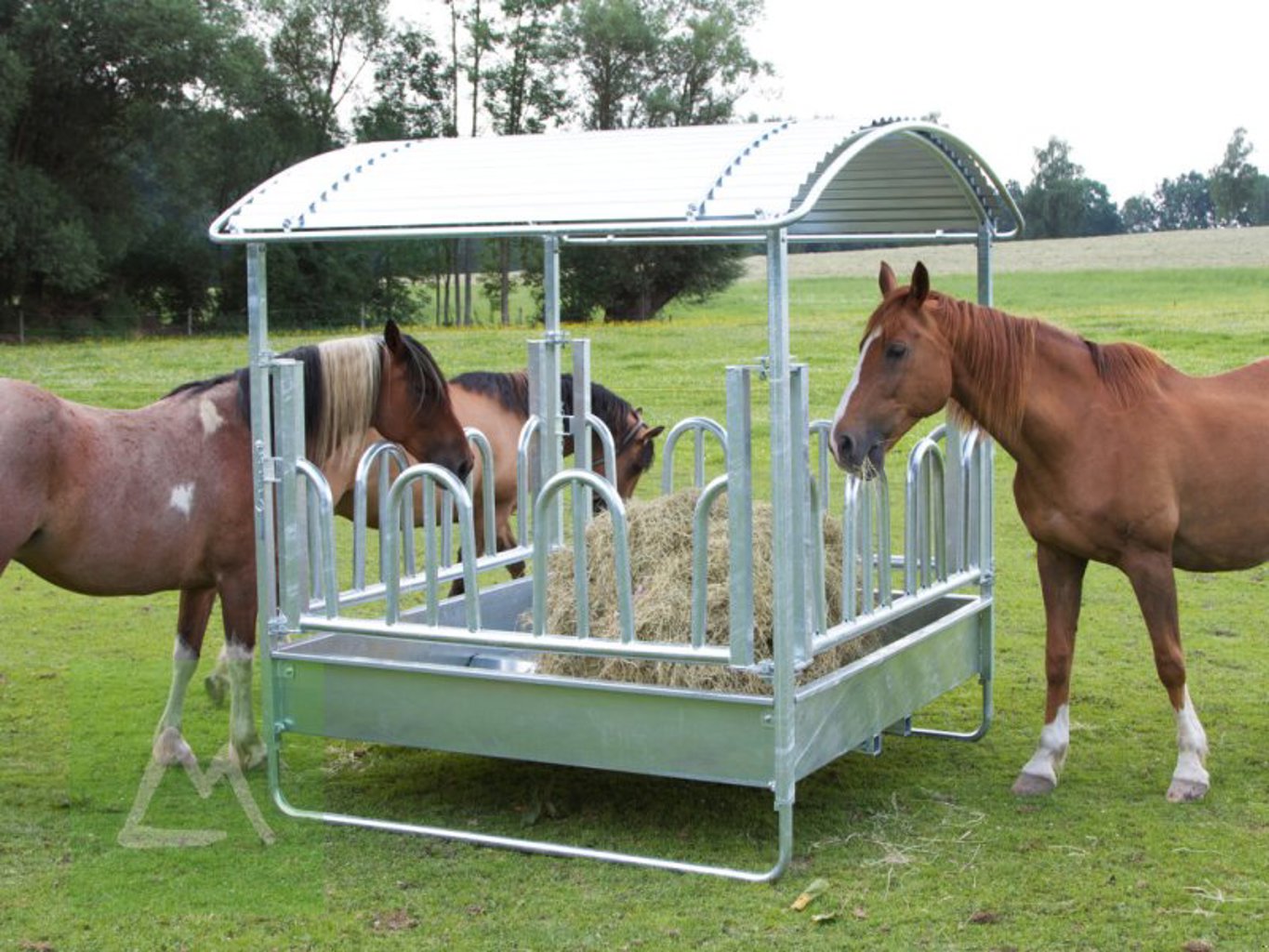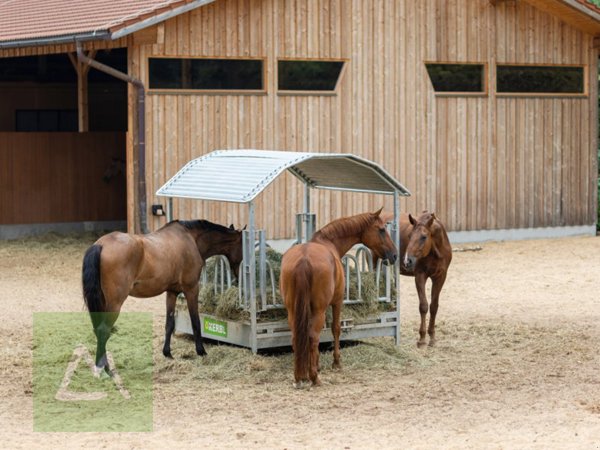 Die Raufe minimiert Futterverluste dank ihres Selbstfangfressgitters und ermöglicht eine einfache Befüllung durch das Öffnen von zwei Seiten.