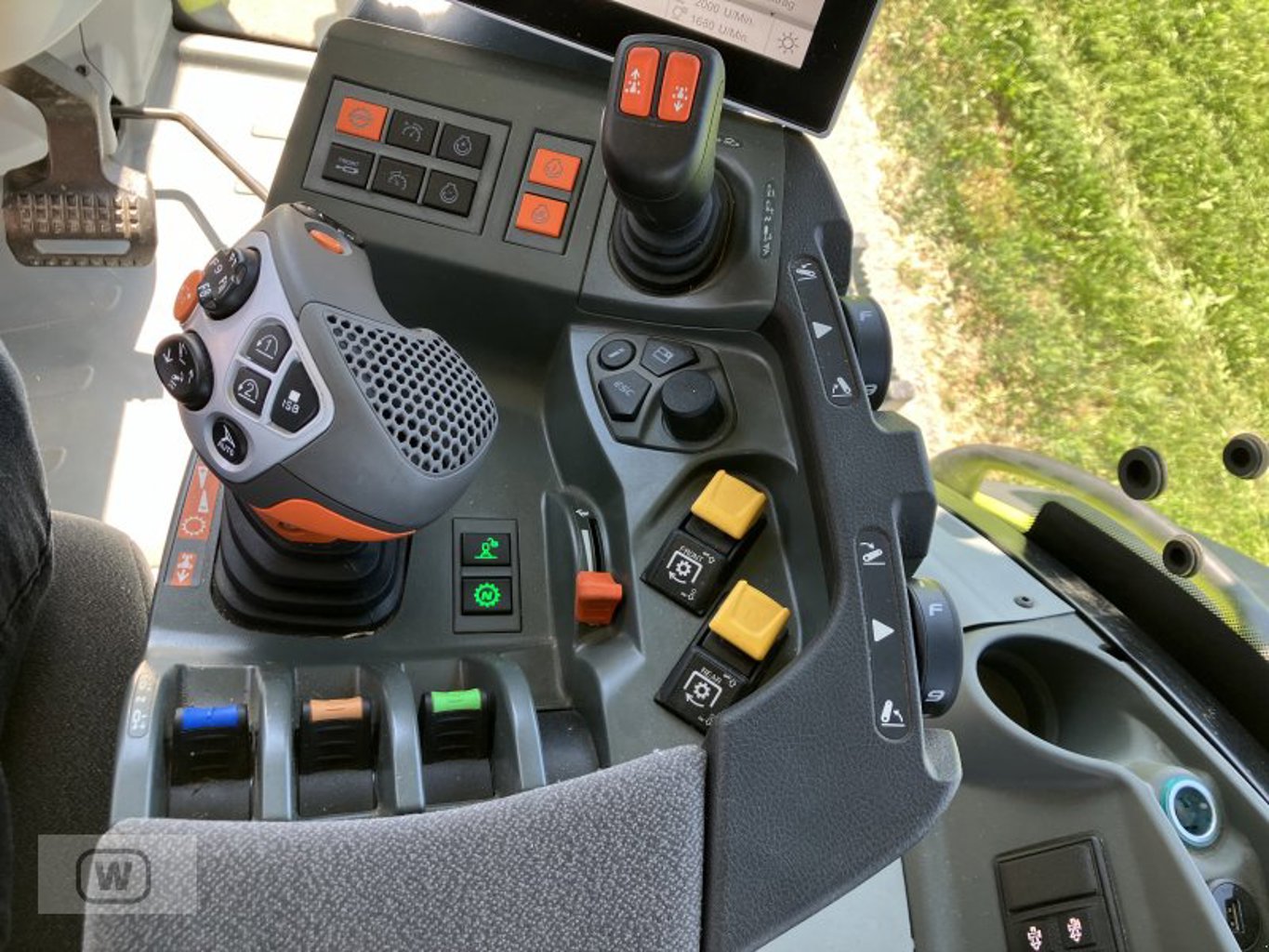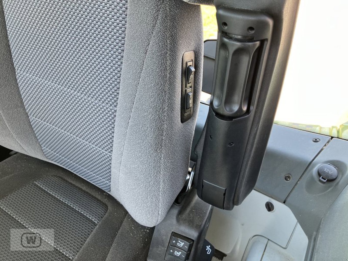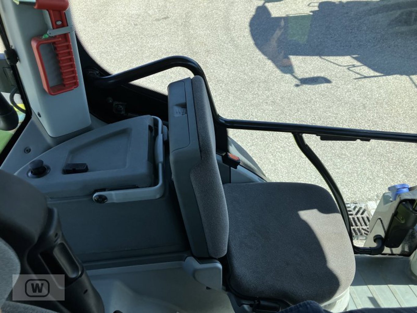 Die vorhandene Kabine bietet dem Fahrer Schutz vor Witterungseinflüssen und trägt damit zum Komfort bei längeren Arbeitseinsätzen bei. Gerade in den kühleren Monaten oder bei Regen ist dies ein Vorteil, der die Arbeitsbedingungen deutlich verbessert.