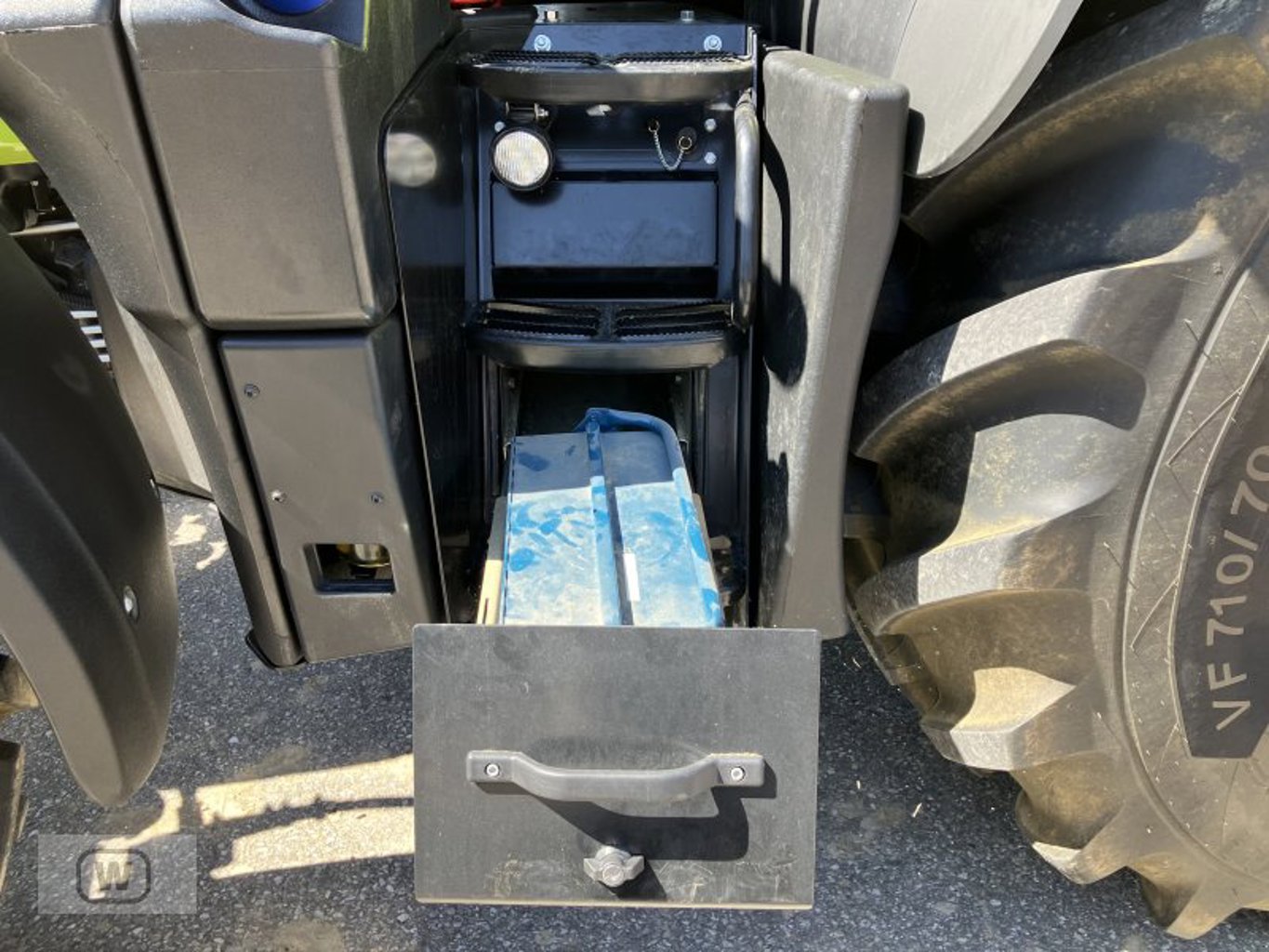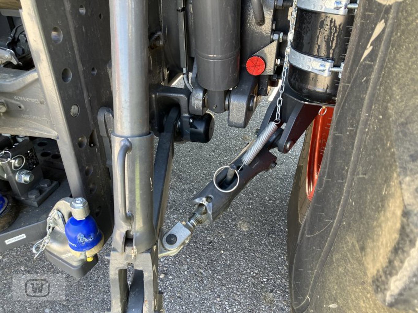 Die Hinterradbereifung ist auf die Anforderungen des Traktors abgestimmt und ermöglicht einen sicheren Einsatz auf verschiedenen Untergründen. Mit den bisher geleisteten 2680 Betriebsstunden liegt der Traktor in einem Bereich, der noch ausreichend Potenzial für weitere Einsatzjahre bietet.